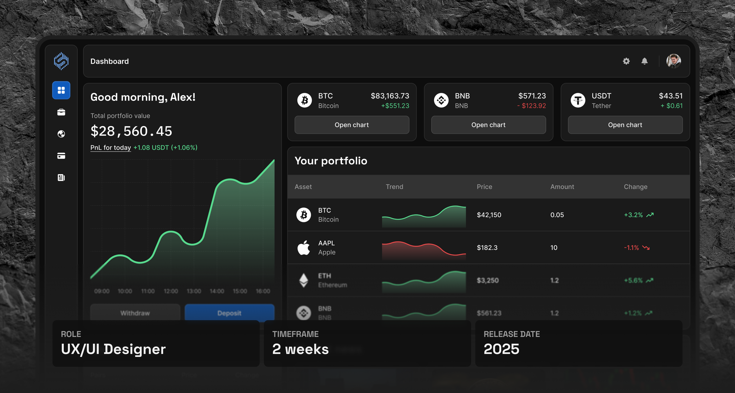 Clean, techy layout to appeal to modern investors.